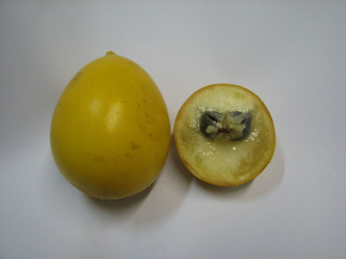 Entre a casca e a polpa, há um látex o qual não recomenda-se morder o fruto.