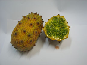 Também conhecido como pepino chifrudo, ou melão chifrudo, tem o nome científico de Cucumis metuliferus, fruto de origem Africana.